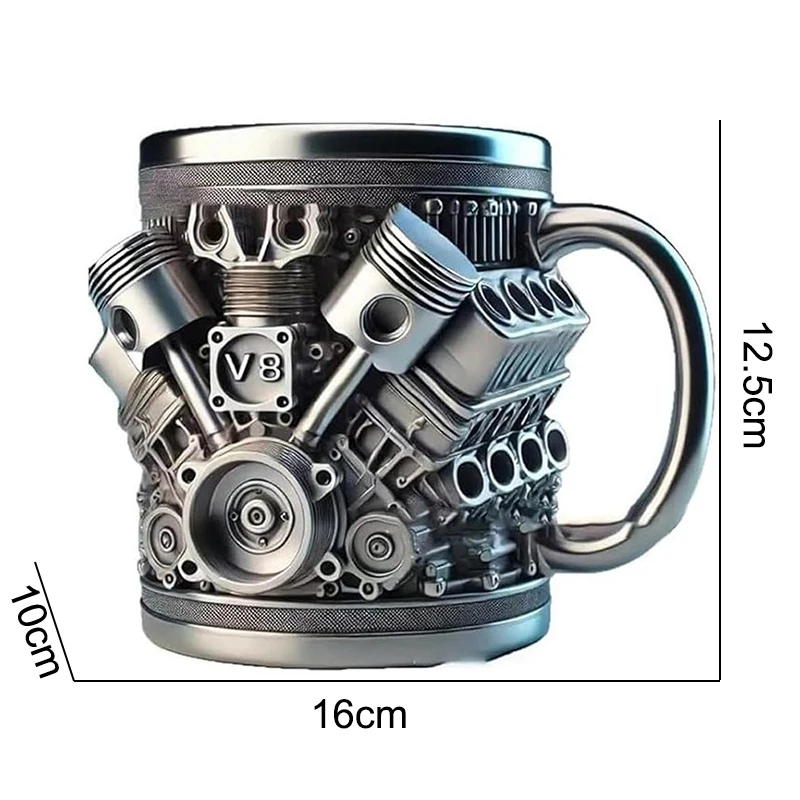 2.Long Time Use: Crafted from resin and stainless steel, this coffee mug is not easy to break or deform, ensuring long-lasting use in the garage or on trips.